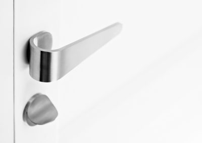 This version has a special stainless steel handle, without rose. The turning mechanism is concealed inside the door panel, featuring an essential and modern look. Available with a FOLD or RIBBON handle by Formani.